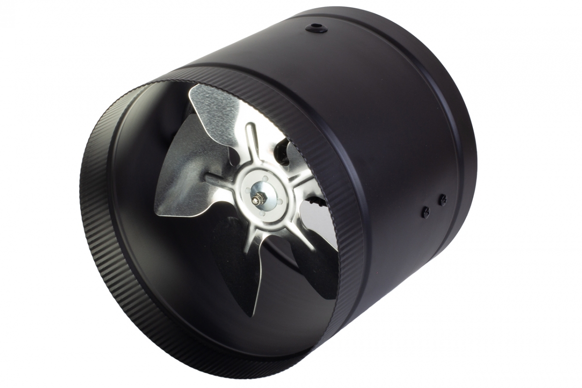 Конструкция: Корпус и крыльчатки вентиляторов выполнены из алюминиевого сплава. Рифленый на обоих торцах корпус позволяет упростить монтаж в уже существующий вентиляционный канал.